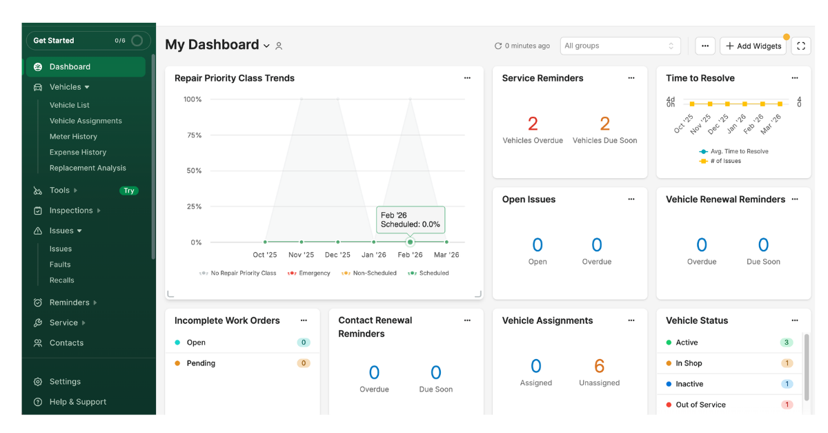 PM scheduling, inspections, issues, work orders, service history, and reporting are designed to run as one connected loop. That’s what prevents defects and tasks from disappearing between modules. - Mixed fleet support (vehicles + equipment + tools)