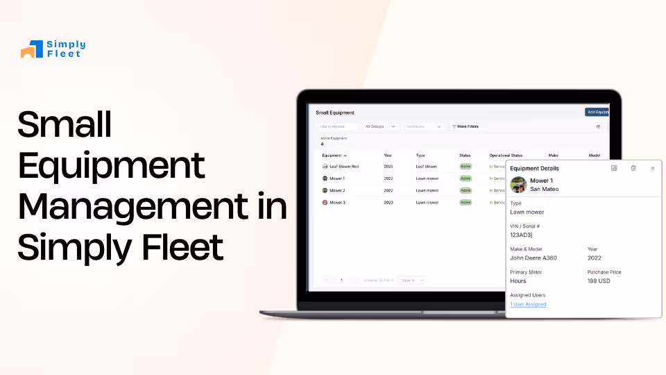 Simply Fleet offers small equipment tracking with assignments, service records, and PM reminders so teams always know where tools are and what condition they’re in.